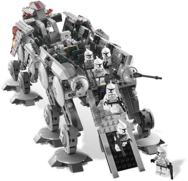 AT-OT lépegető: Mozgatható lábak, forgatható ágyúk, fegyverrekeszek, összecsukható pilótafülke és beszálló rámpa.